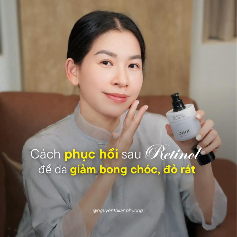 Phương ưu tiên retinol theo triết lý dưỡng da Hàn Quốc. Triết lý này tập trung vào ổn định và hạn chế bong rát. Trong nhiều năm thử nghiệm, Phương dừng lại ở Retinol của OHUI. Sản phẩm này ứng dụng công nghệ vi nang giúp giảm kích ứng. Hoạt chất thẩm thấu sâu nhưng giải phóng từ từ. Nhờ vậy da ít bị sốc khi mới bắt đầu. Quan trọng là lựa chọn sản phẩm phù hợp với cách dùng Retinol đúng để tạo hiệu quả tốt nhất.