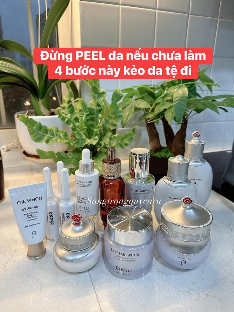 Ban ngày bắt buộc chống nắng kỹ và đủ lượng. Sau peel, da nhạy cảm với ánh nắng hơn bình thường. Nếu chống nắng lỏng lẻo, da rất dễ tăng sắc tố ngược. Trong giai đoạn phục hồi tuyệt đối chưa quay lại retinol hay acid mạnh. Chỉ khi da ổn định hoàn toàn mới đưa hoạt chất vào lại từ từ. Peel xong mà không phục hồi đúng, da sẽ đẹp ngắn hạn nhưng xuống rất nhanh.